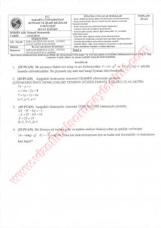 İktisadi Matematik Vize Soruları Ve Cevapları-2013 24-04-2015, 23:35