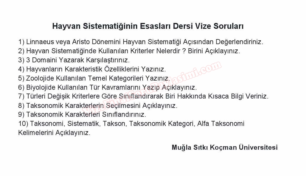 Vize ve Final Soruları / Muğla Sıtkı Koçman Üniversitesi / Hayvan Sistematiğinin Esasları Dersi