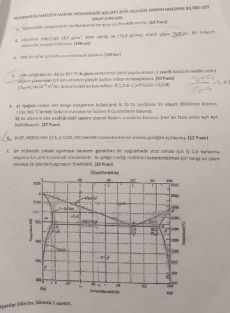 Malzeme Bilgisi Dersi Vize Soruları - 2015 ( Müh. Fakültesi) 17-11-2016, 22:00