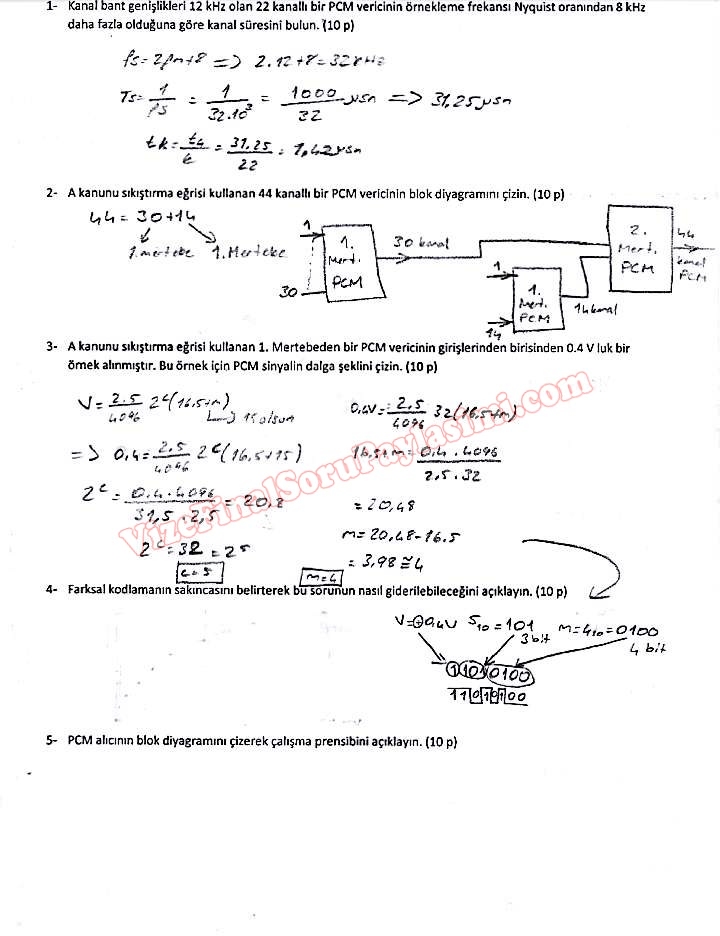 Vize ve Final Soruları / İstanbul Üniversitesi / Sayısal Haberleşme Dersi
