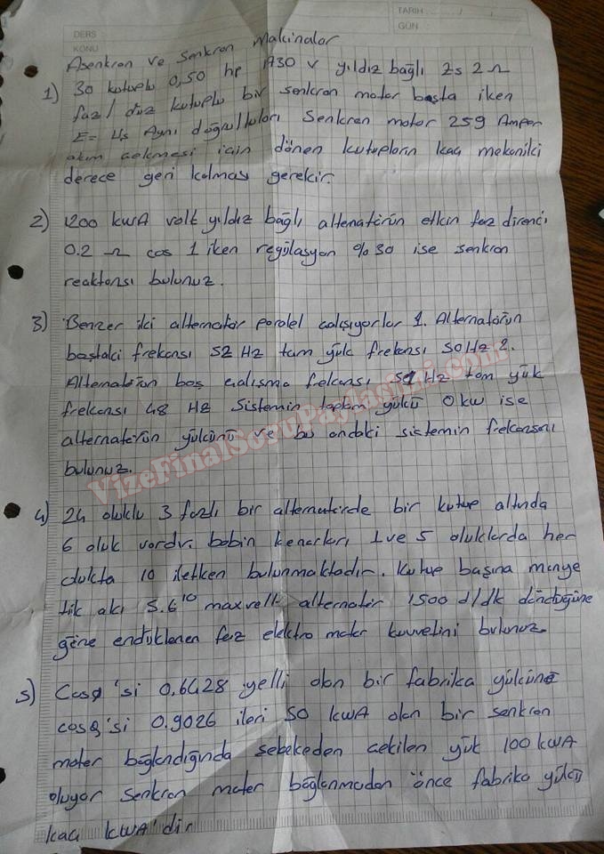 Asenkron ve Senkron Makineler Dersi Final Soruları 1-01-2016, 15:28