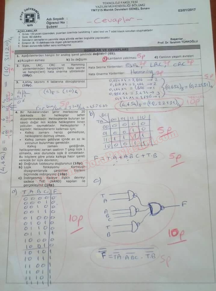 mantık devreleri yazılım mühendisliği Teknoloji Fakültesi Final Soruları 2017 Fırat Üniversitesi GERİ DÖN-
