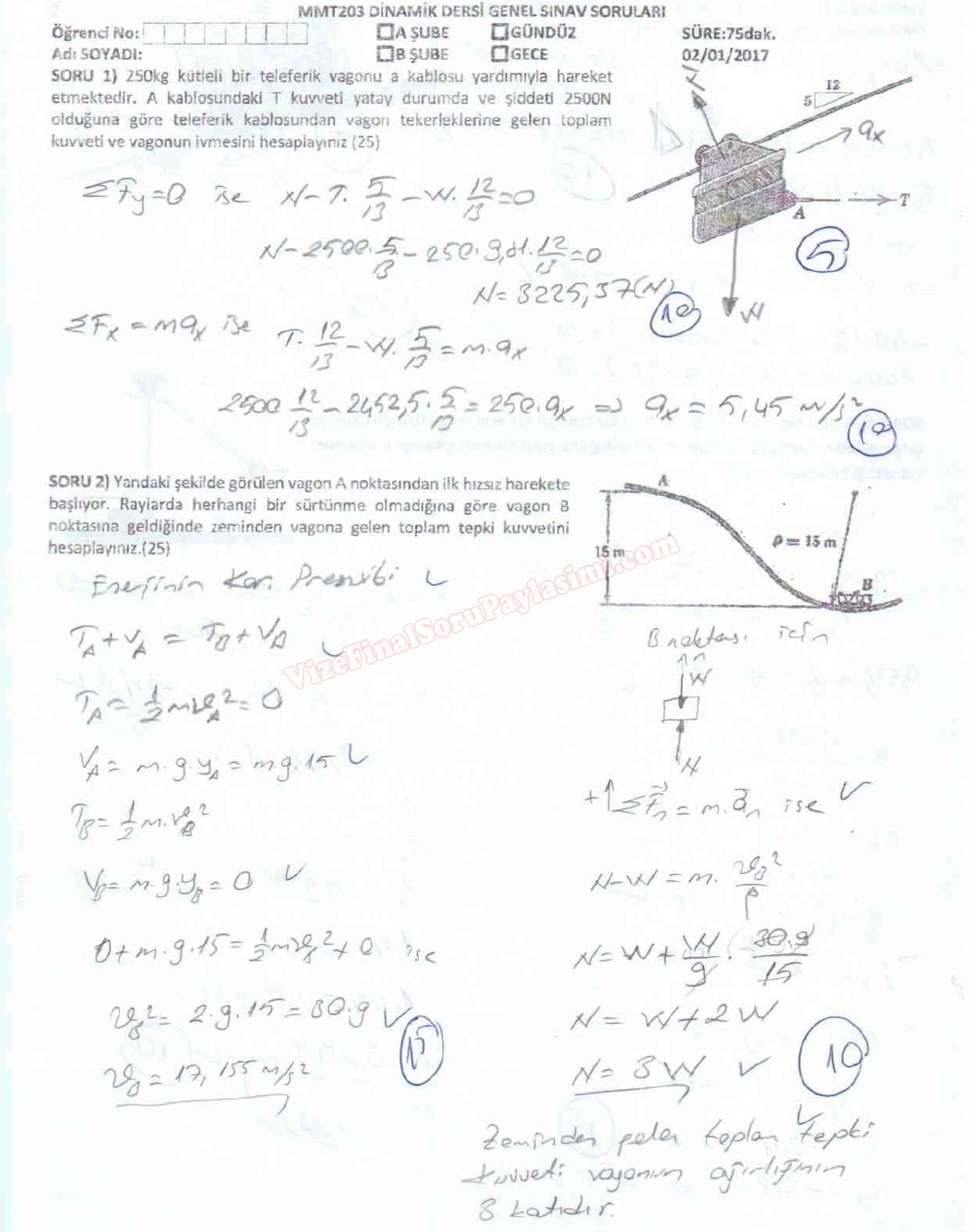 Dinamik Dersi Final Soruları ve Cevapları - 2017