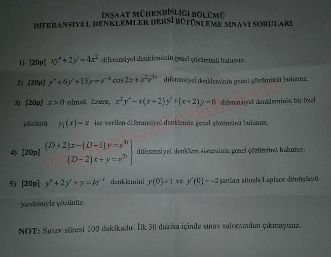 Diferansiyel Denklemler Ara Sınav Soruları 28-11-2016, 12:44