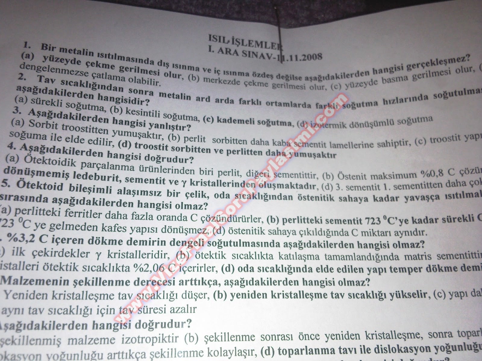 Isıl İşlemler Dersi Vize Soruları - 11.11.2008