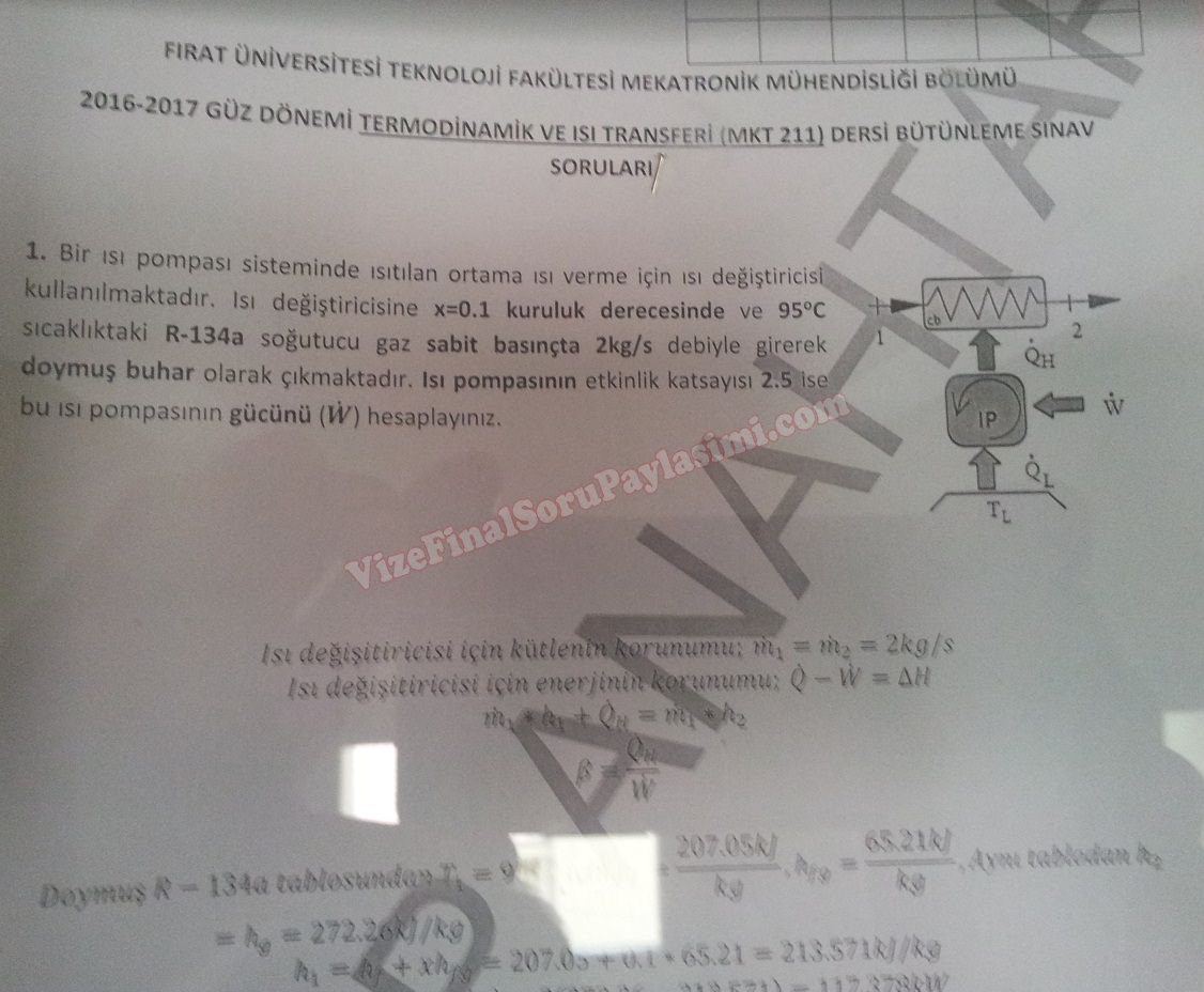 Termodinamik ve Isı Transferi Bütünleme soruları Cevapları Fırat Üniversitesi GERİ DÖN-