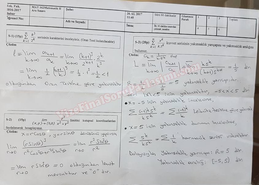 Matematik -2 Vize Soruları ve Çözümleri - 2017