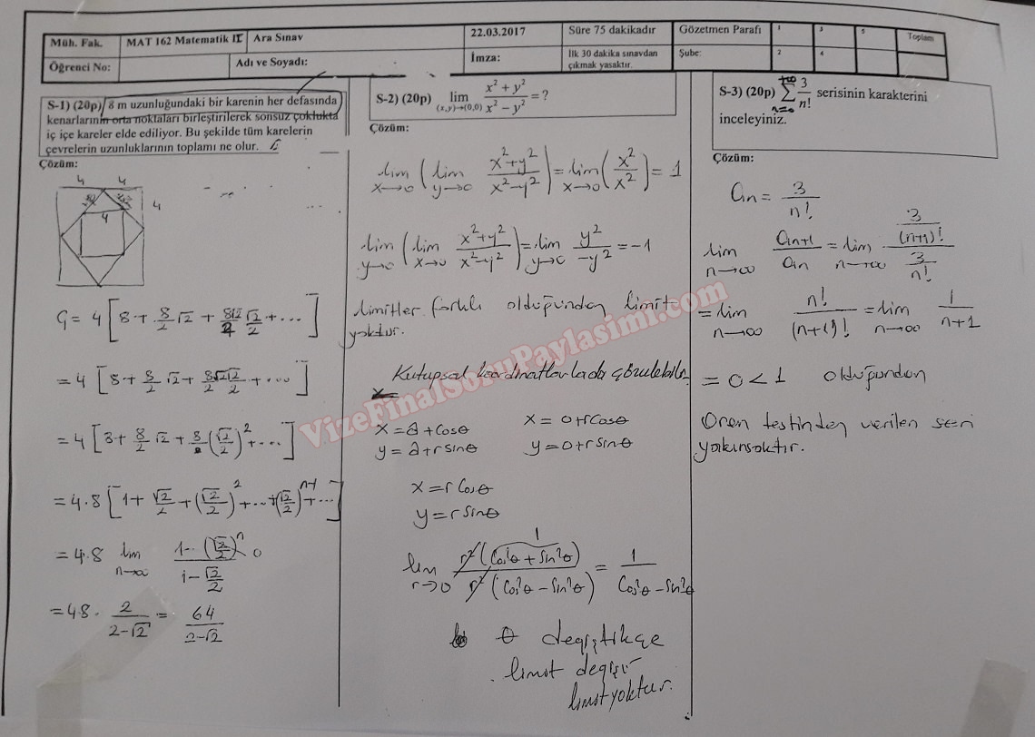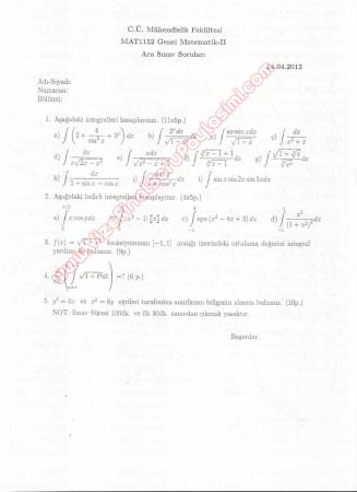 Matematik-2 Vize Soruları ve Cevapları-Mühendislik Fakültesi