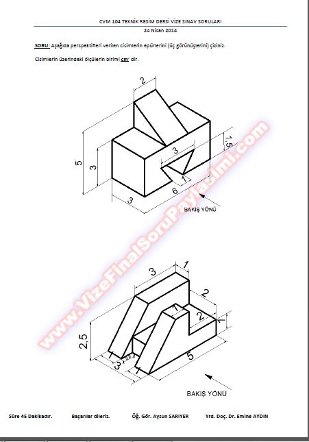 Vize ve Final Soruları / Sakarya Üniversitesi / Teknik Resim Dersi