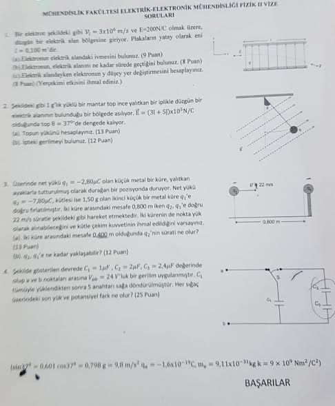 Sakarya Üniversitesi fizik-2 Vize soruları