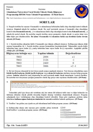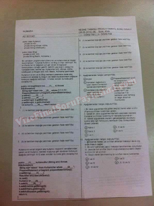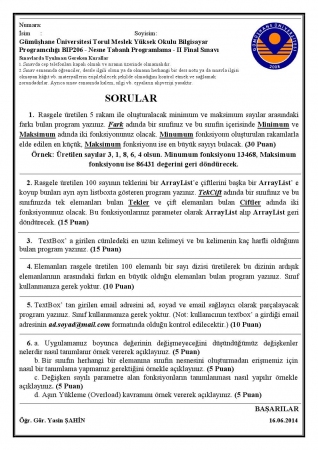 Nesne Tabanlı Programlama - 2 Yarıyıl Sonu Sınav Soruları