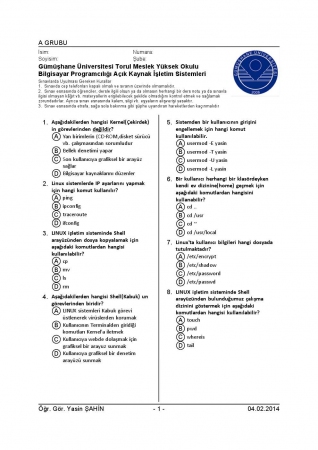 Vize ve Final Soruları / Karadeniz Teknik Üniversitesi / Sunucu İşletim Sistemi