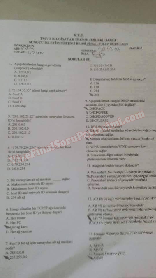 final sorulari sorular katu karadeniz teknik uni universitesi ktu tmyo sunucu isletim sistemleri