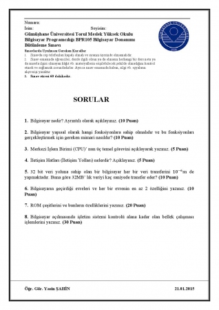 Vize ve Final Soruları / Karadeniz Teknik Üniversitesi / Bilgisayar Donanımı