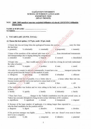 Gaziantep Üniversitesi İngilizce Muafiyet Soruları Ve Cevapları 28-07-2015, 19:13