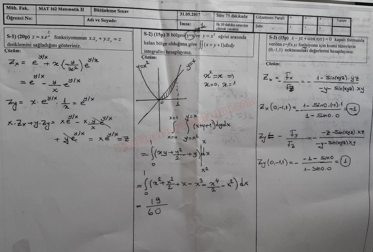 Matematik -2 Bütünleme Soruları ve Çözümleri - 2017 30-05-2017, 01:16