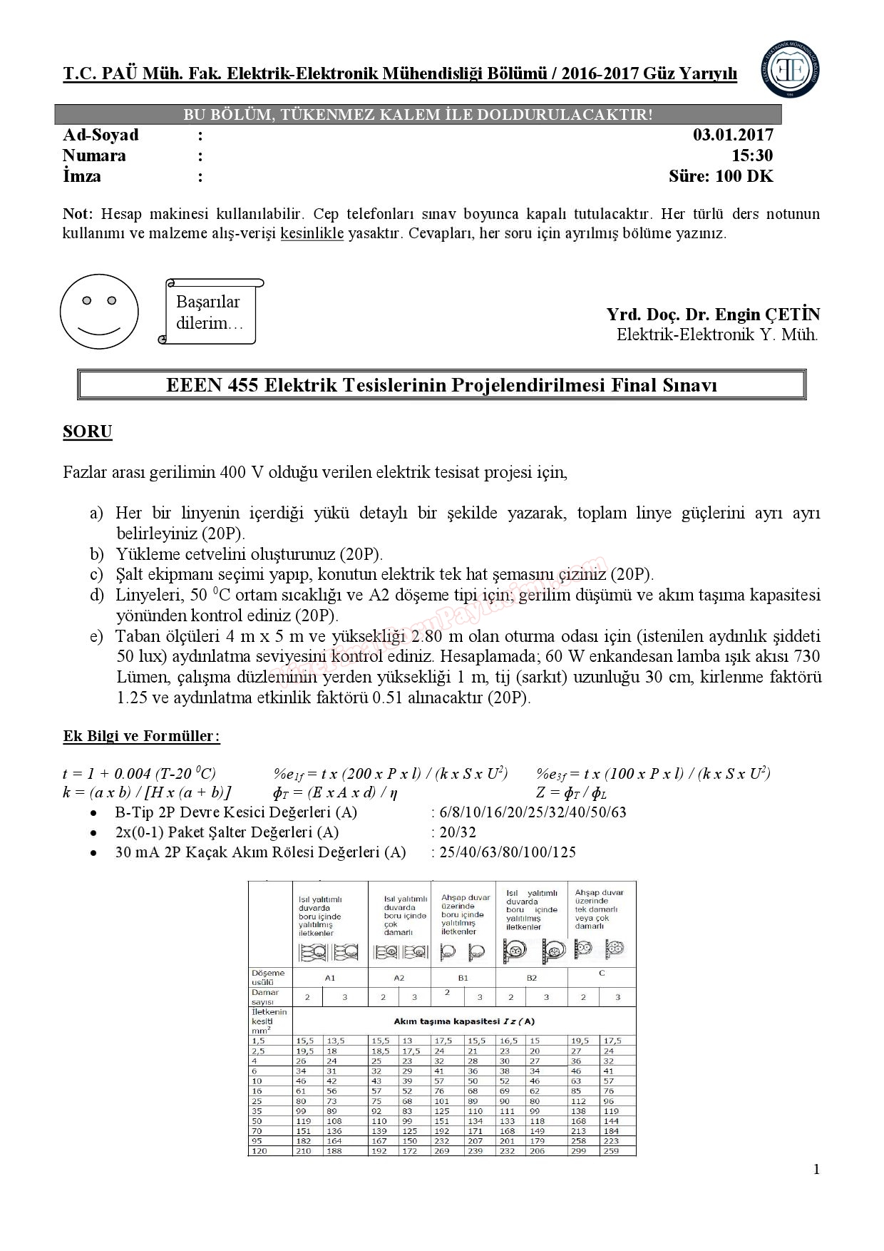 elektrik Tesislerinin projelendirilmesi final soruları Final Soruları ve Cevapları Pamukkale Üniversitesi 2017 2017 GERİ DÖN-