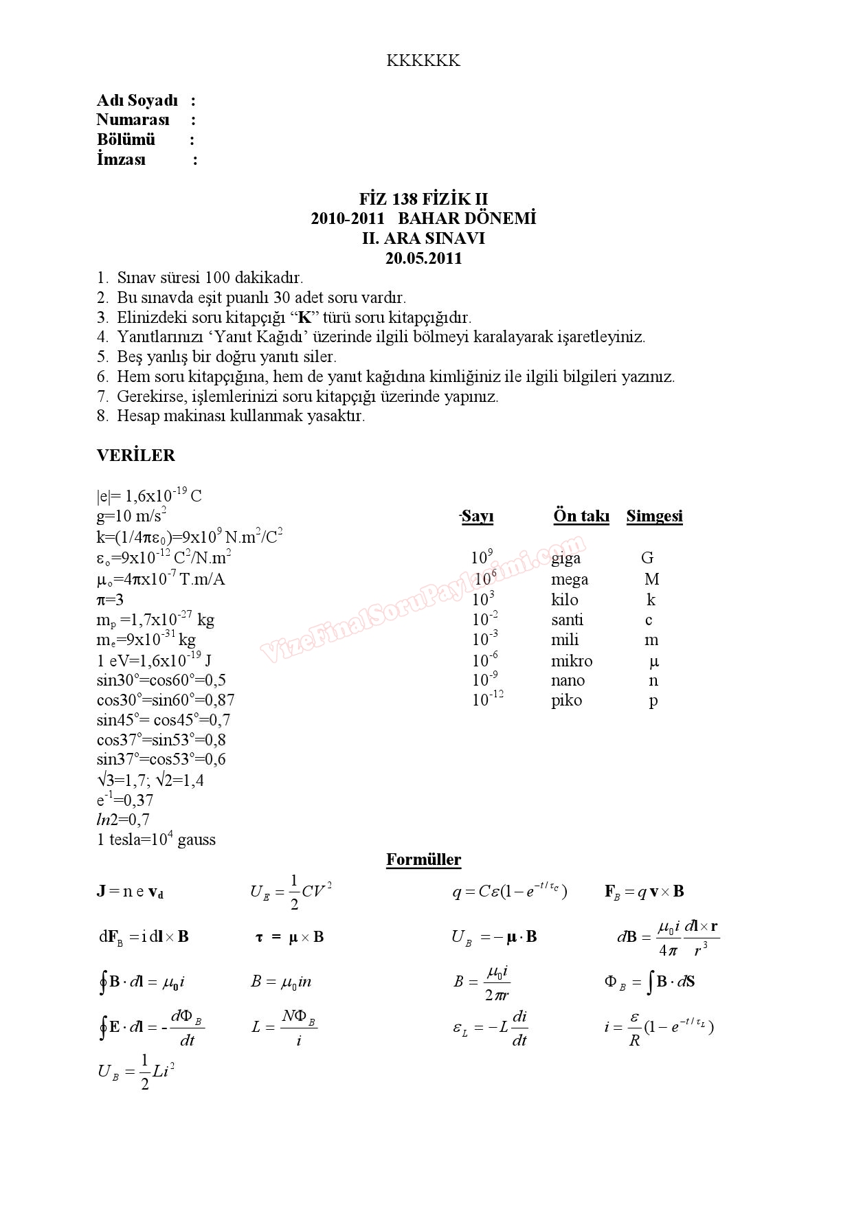 Fizik -2 Arasınav -1 Sınav Soruları 10-06-2017, 16:02