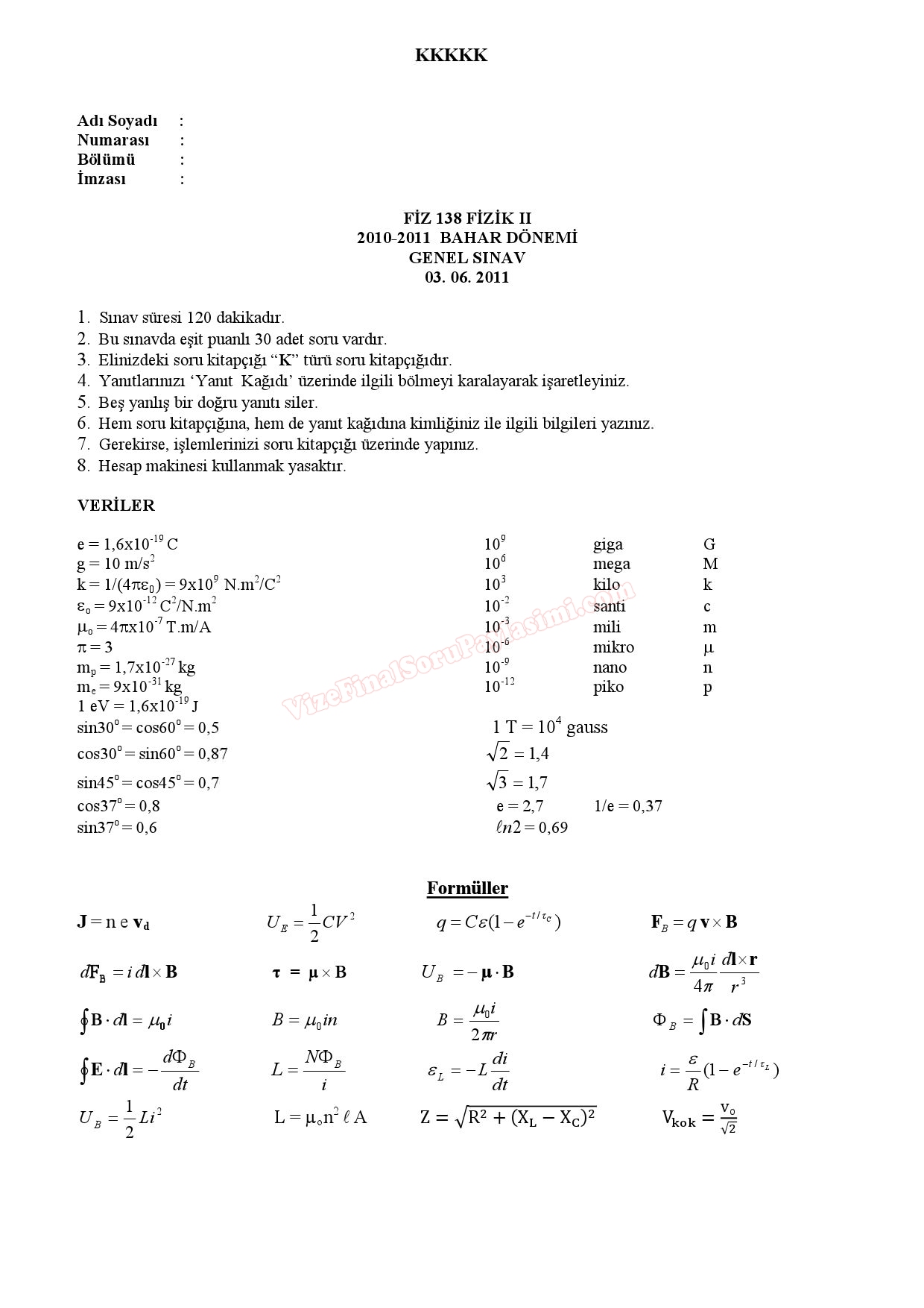 Fizik -2 Genel Sınav Soruları 10-06-2017, 15:18