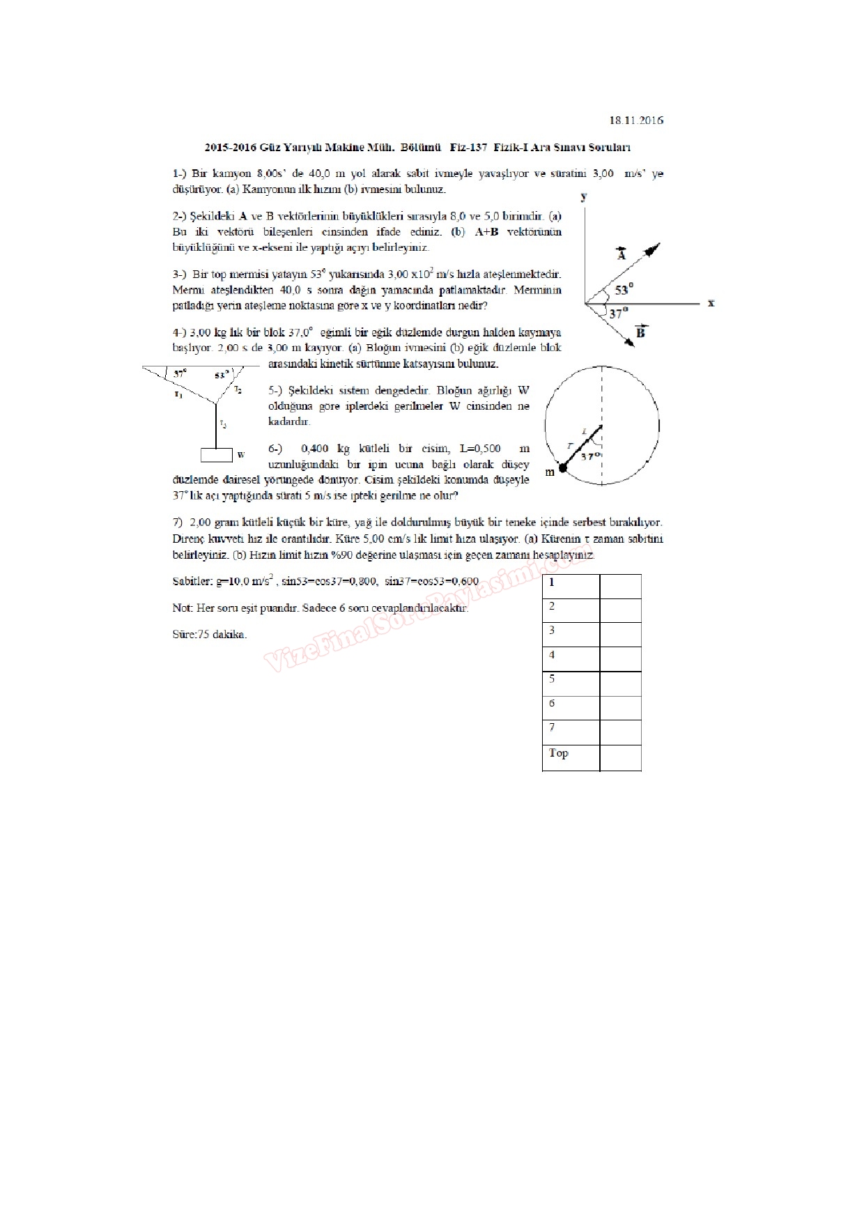Fizik-1 Arasınav Soruları Cevapları Süleyman Demirel Üniversitesi 2016 Vize Soru ve Cevapları GERİ DÖN-