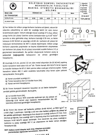 Vize ve Final Soruları / Süleyman Demirel Üniversitesi / Isı Transferi