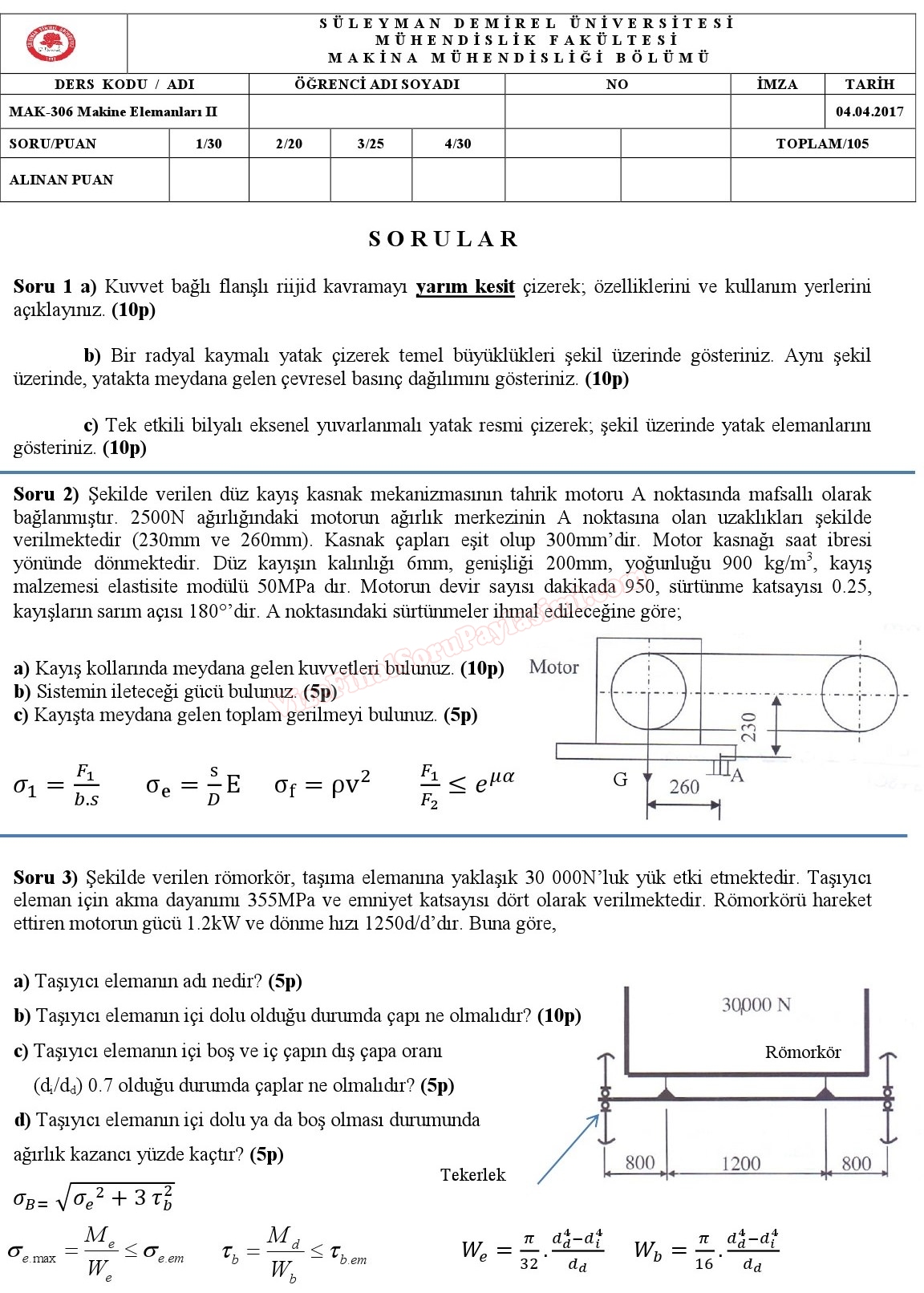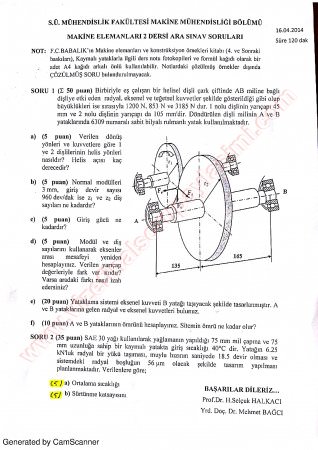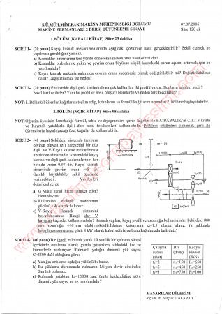 Makine Elemanları -2 vize soruları Vize Soruları ve Cevapları Süleyman Demirel Üniversitesi SDÜ 2017 GERİ DÖN-