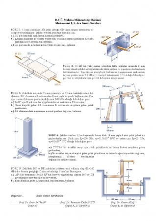 Vize ve Final Soruları / Süleyman Demirel Üniversitesi / Mukavemet -1