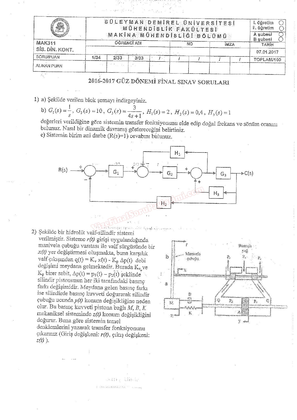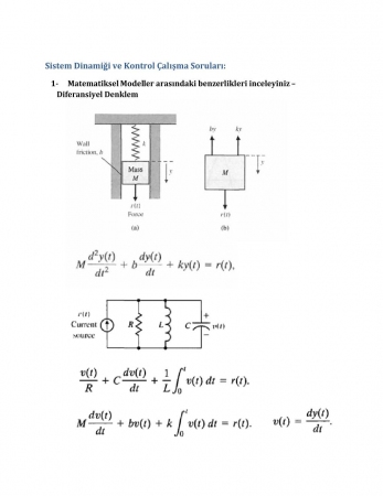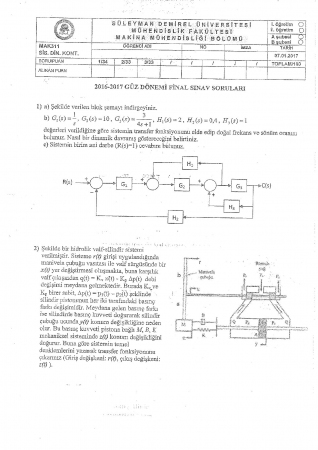 Sistem Dinamiği ve Kontrol Dersi final soruları Final Soruları ve Cevapları Süleyman Demirel Üniversitesi SDÜ 2017 GERİ DÖN-