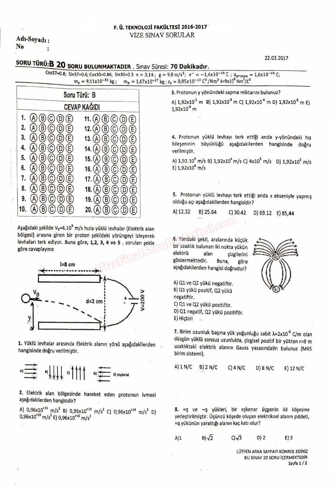 Fizik -2 Fizik Vize Soruları Test 2017 Fırat Üniversitesi