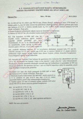 Transport Tekniği Dersi Vize Soruları - 2014 7-01-2015, 05:36