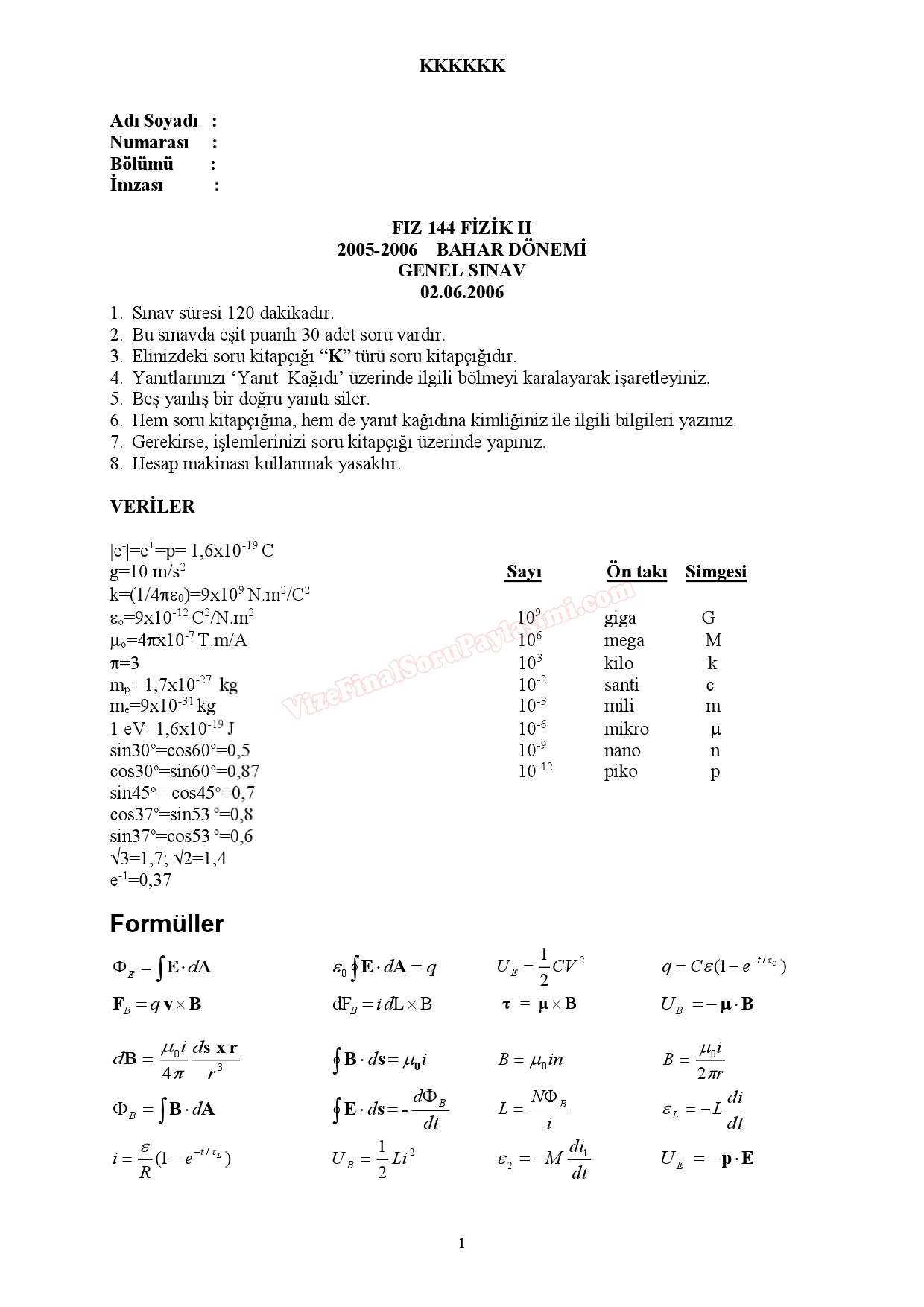 Fizik -2 Genel Sınav Soruları 10-06-2017, 15:18