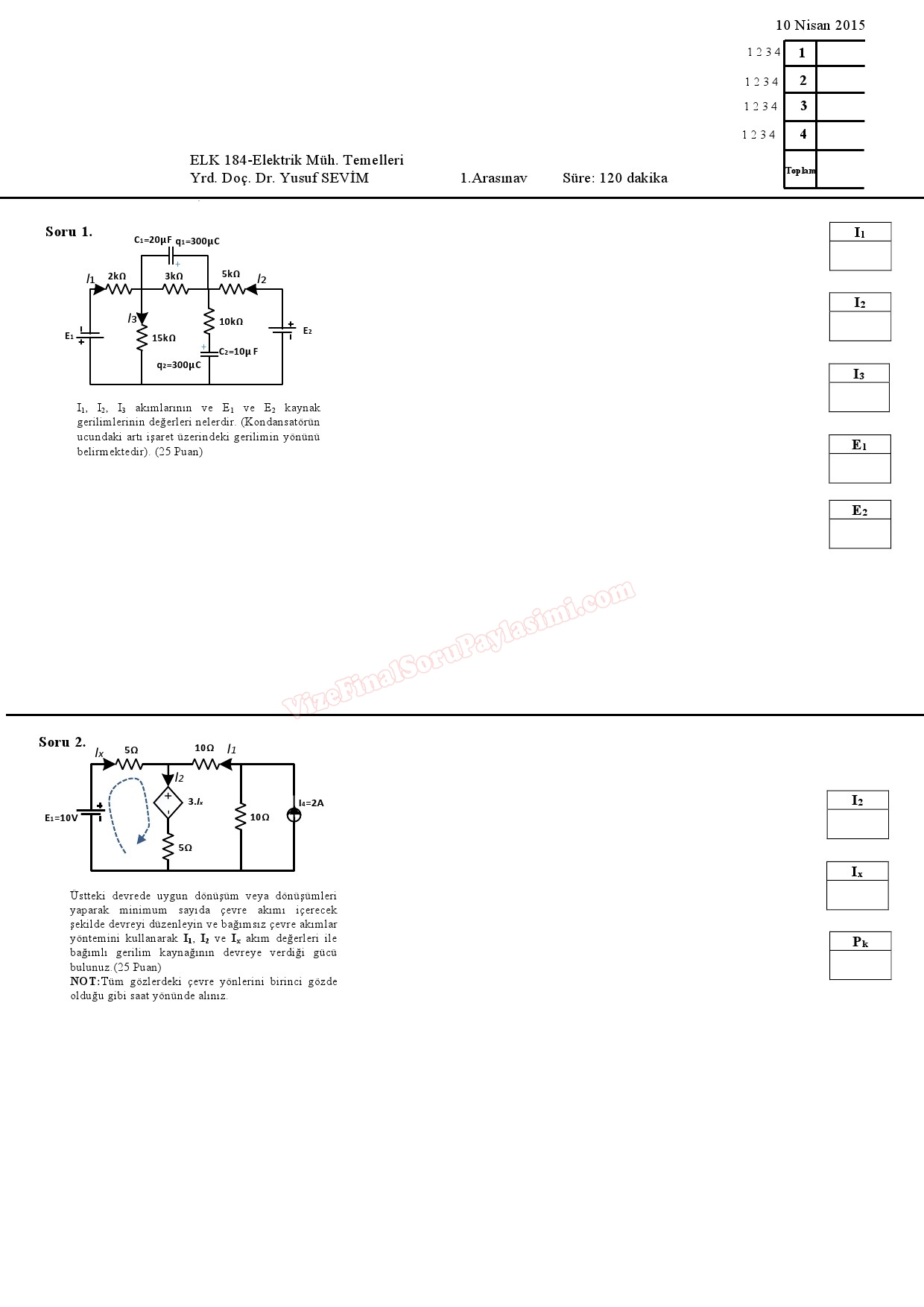 Elektrik Elektronik Mühendisliğinin Temelleri Arasınav -1 Soruları 16-09-2017, 19:20
