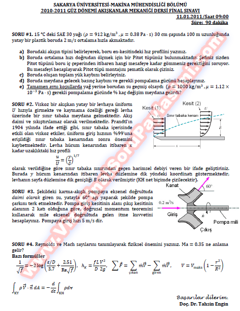 Akışkanlar Mekaniği Final Soruları Ve Cevapları - 11.01.2011
