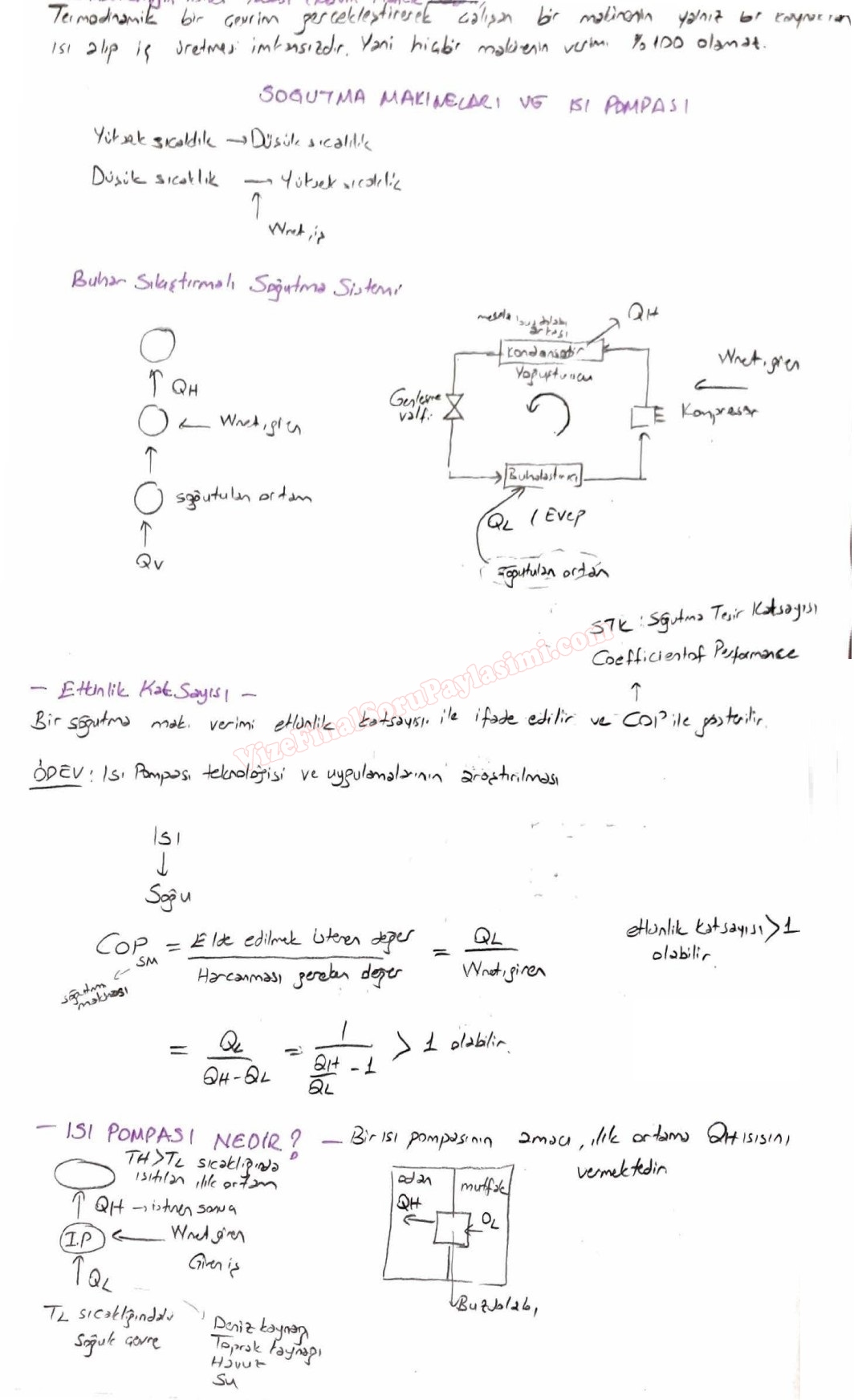 Termodinamik -2 Termodinamik Dersi Soğutma Makineleri Isı Pompası Ders Notları Çalışma Soruları GERİ DÖN-