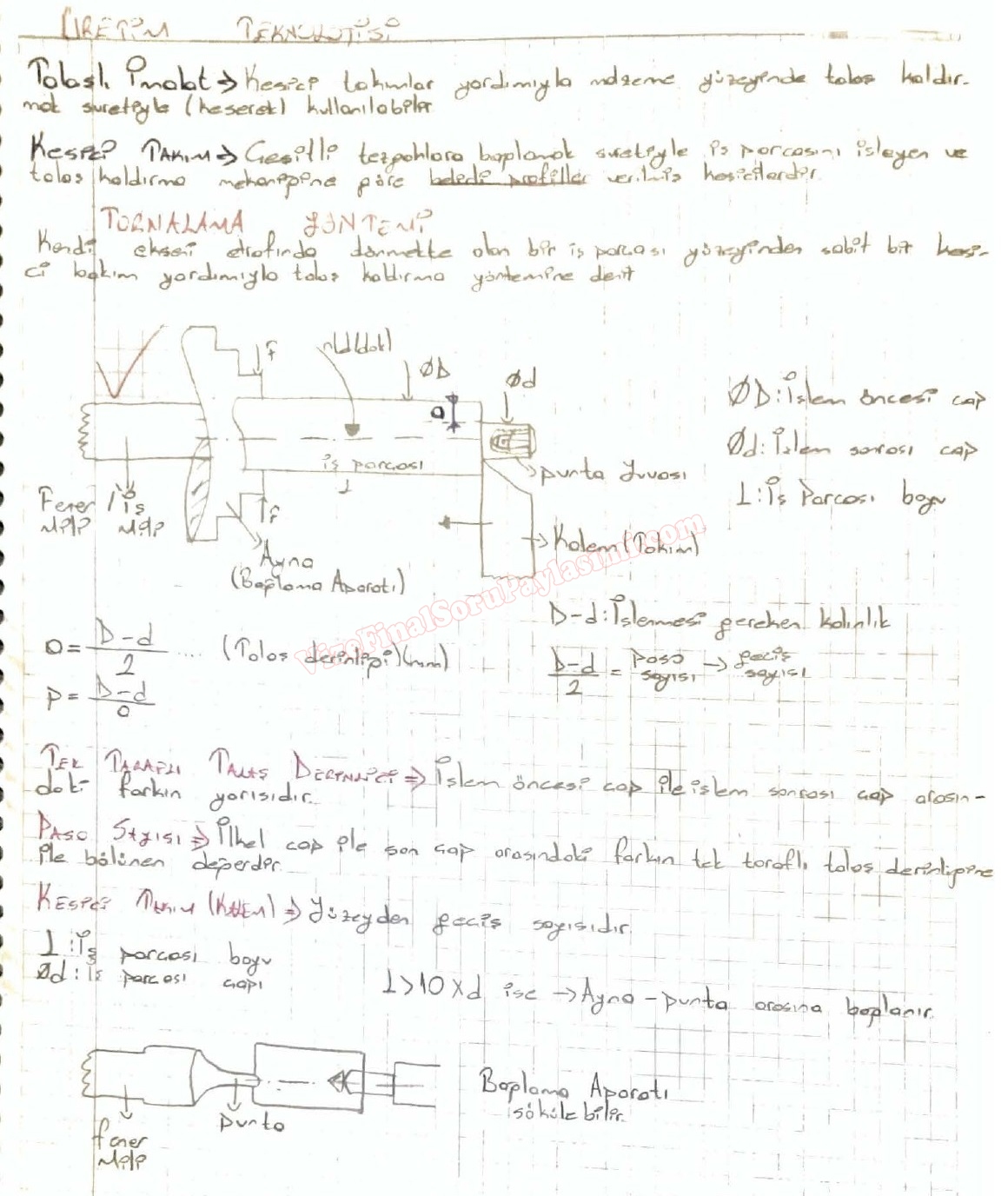 Üretim Teknolojisi -1 Üretim Teknolojisi Tornalama Yöntemi Ders Notları Tornalama Çalışma Soruları GERİ DÖN-