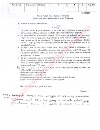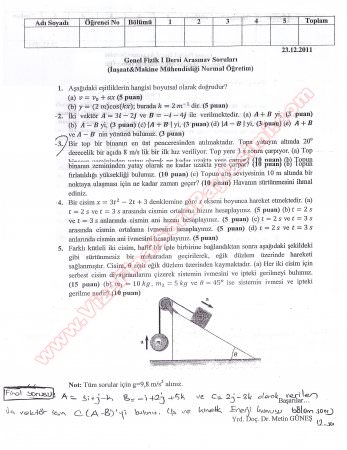 Genel Fizik 1 Vize Sınav Soruları Gece 2011 26-03-2015, 05:54