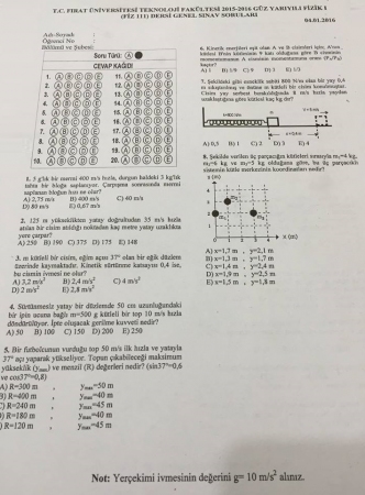 Fizik -1 Final Soruları - 2016 26-01-2016, 16:55