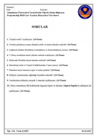 Yazılım Mimarileri Dersi Vize Soruları 2015 14-01-2016, 07:11