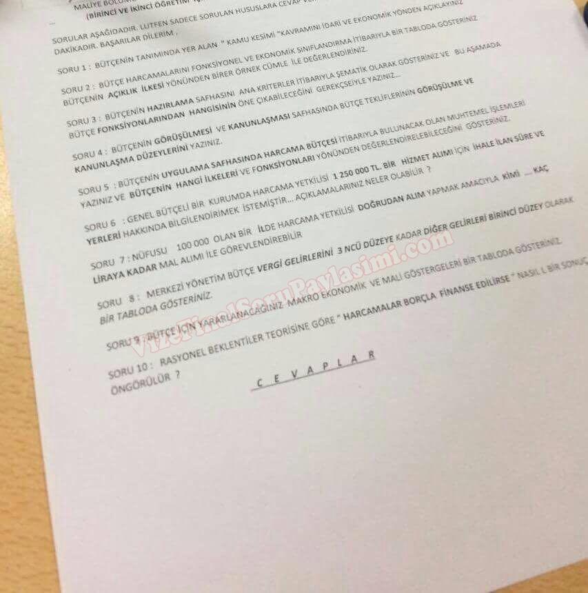 Bütçe Dersi Final Soruları - Test 30-12-2017, 14:54