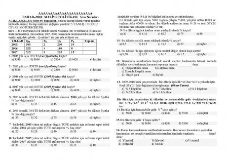 Maliye Teorisi Dersi Yaz Okulu Vize Soruları