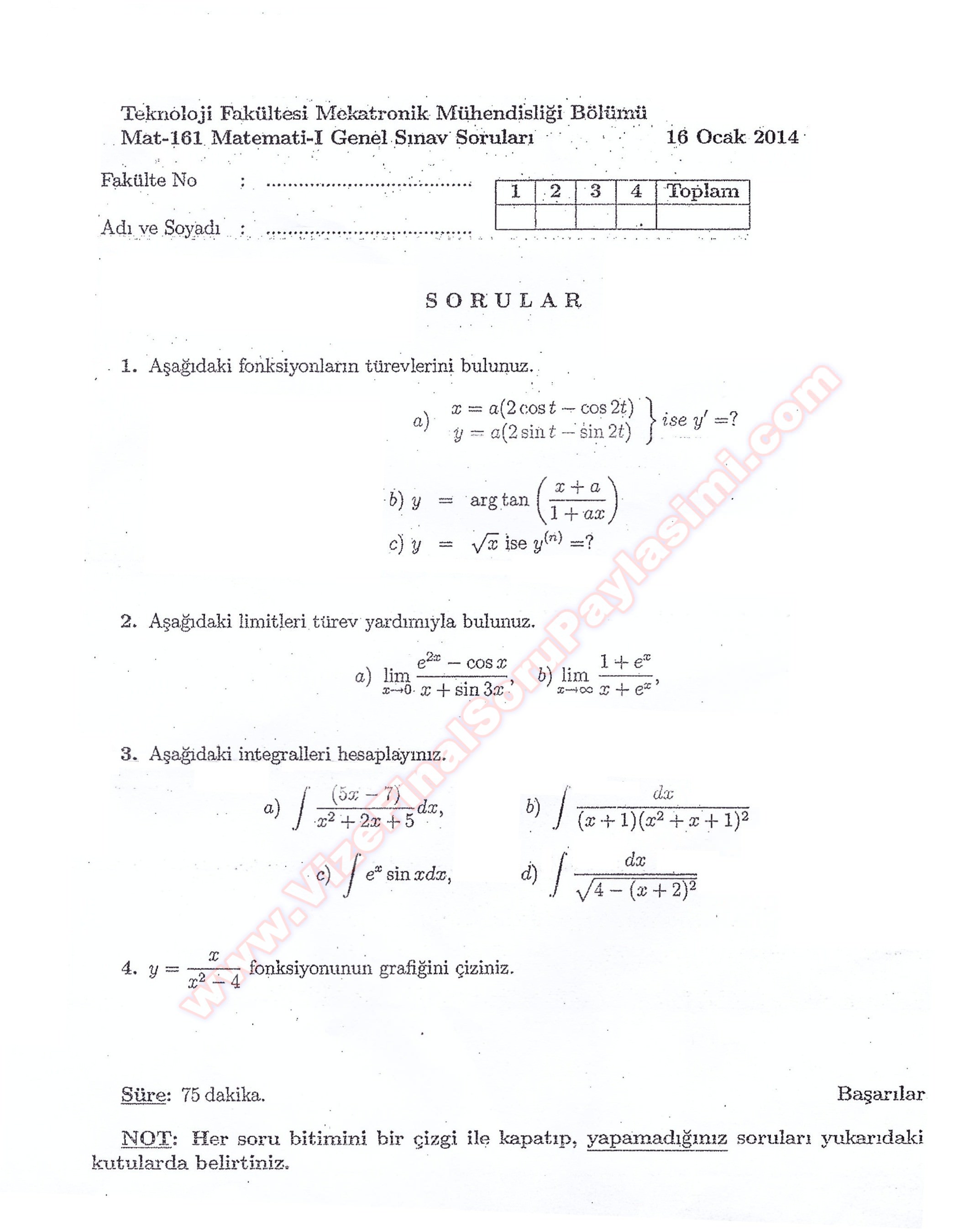 Matematik Vize Soruları - ( İTÜ ) 23-07-2014, 09:57