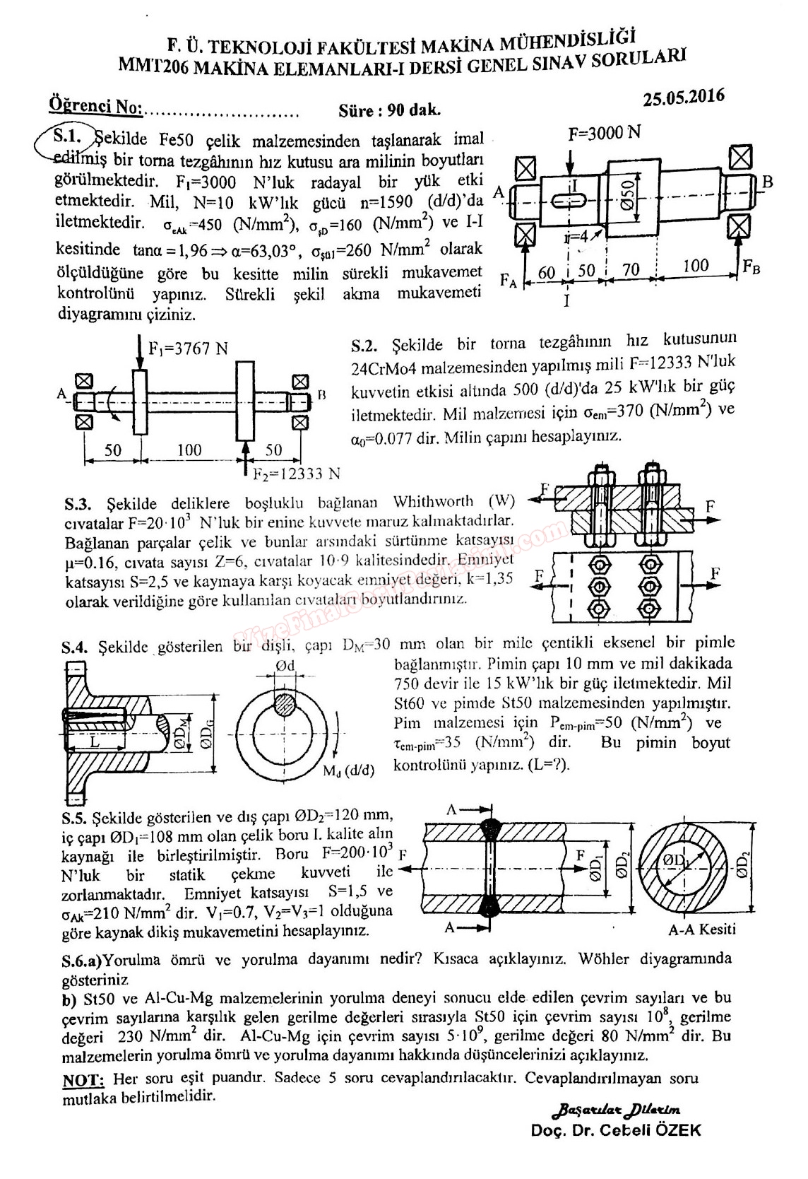 Vize ve Final Soruları / Fırat Üniversitesi / Makina Elemanları-1