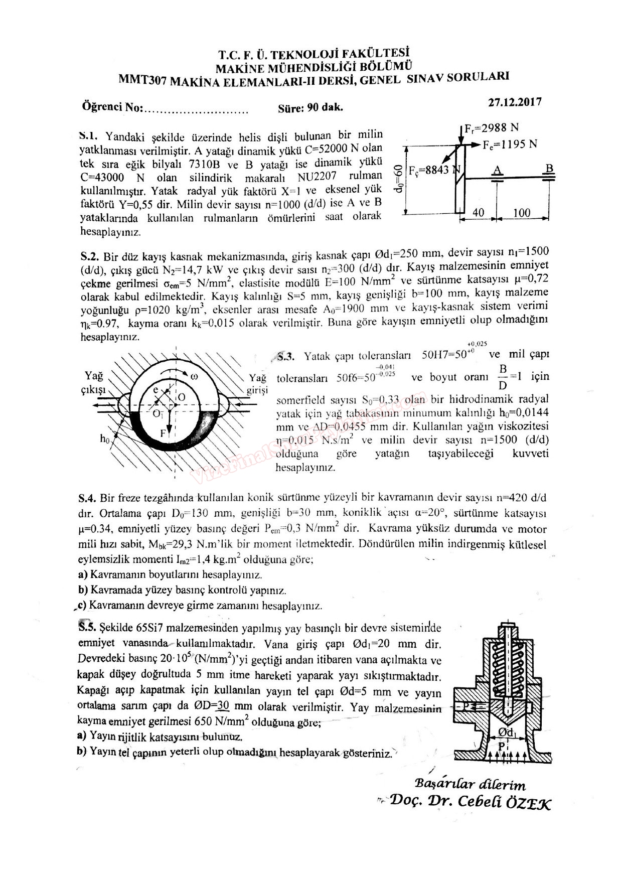 Makina Elemanları -2 Vize Sınav Soruları 17-09-2017, 16:45