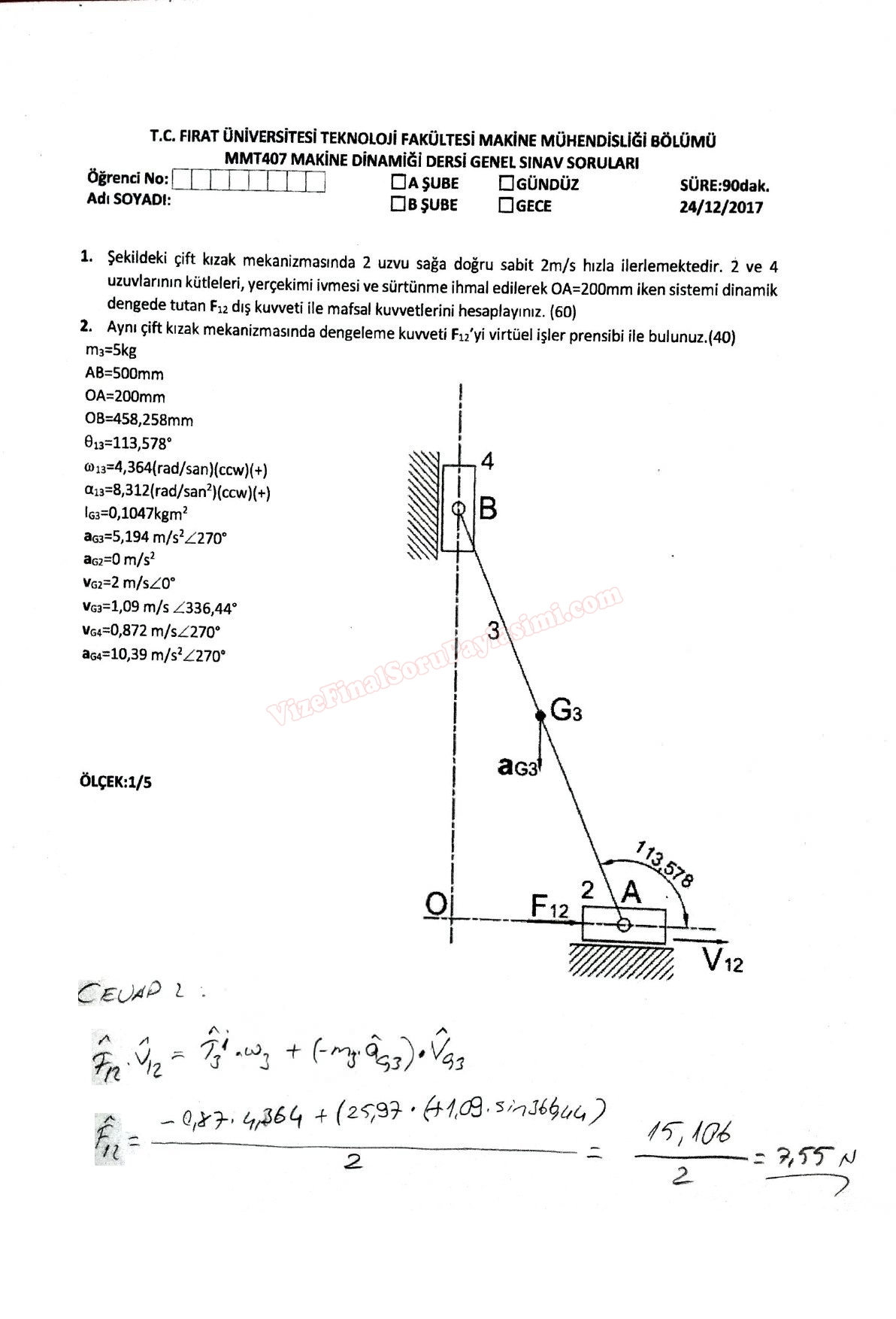 Fırat Üniversitesi final soruları cevaplari çözümleri makina dinamiği makine dinamiği GERİ DÖN-