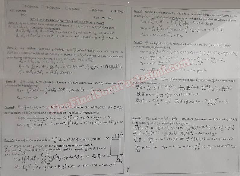 Fırat Üniversitesi elektromanyetik 1 elekromanyetik dersi Final Soruları ve Cevapları final soruları cevapları 2017