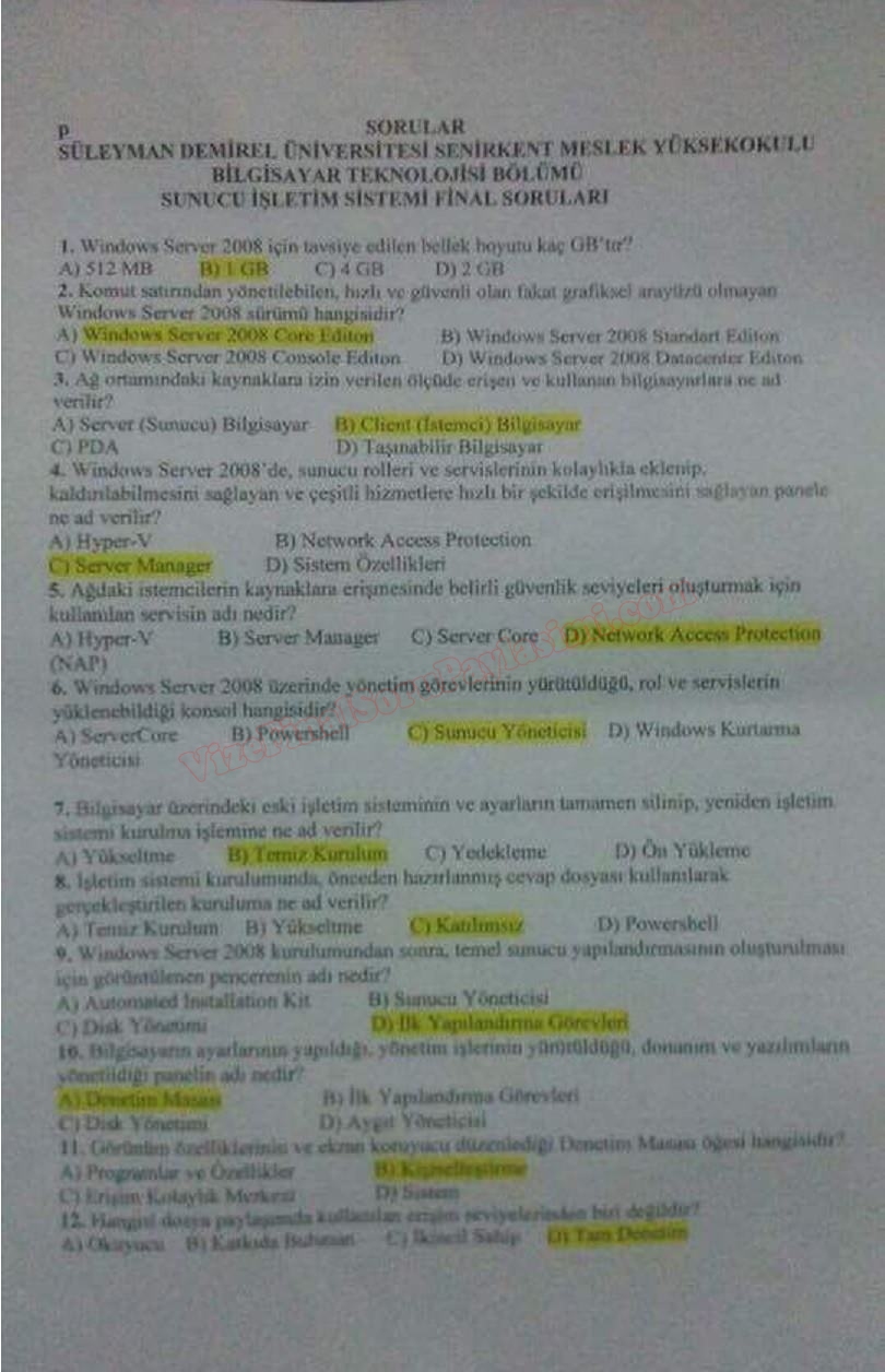 sdu Süleyman Demirel Üniversitesi sunucu isletim sistemi final soruları cevapları GERİ DÖN-
