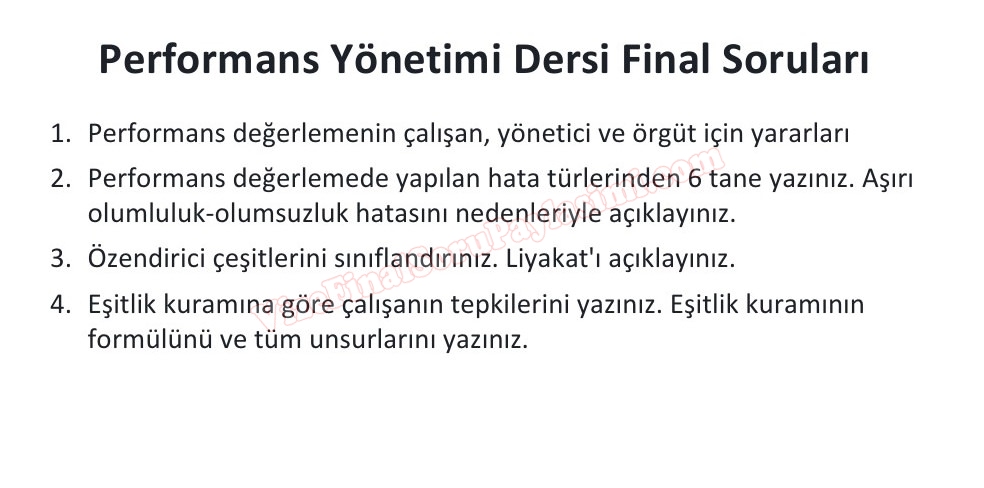 Vize ve Final Soruları / Gazi Üniversitesi / Performans Yönetimi Dersi