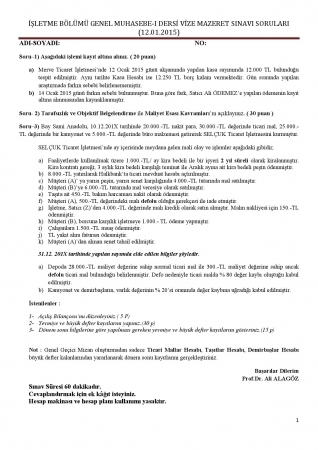 Genel Muhasebe -1 Mazeret Sınavı Soruları 26-04-2016, 23:34