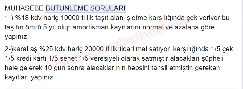 Muhasebe Dersi Bütünleme Soruları 18-01-2015, 00:26