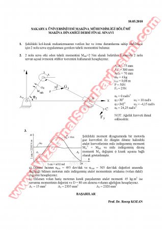 Vize ve Final Soruları / Fırat Üniversitesi / Makina Dinamiği